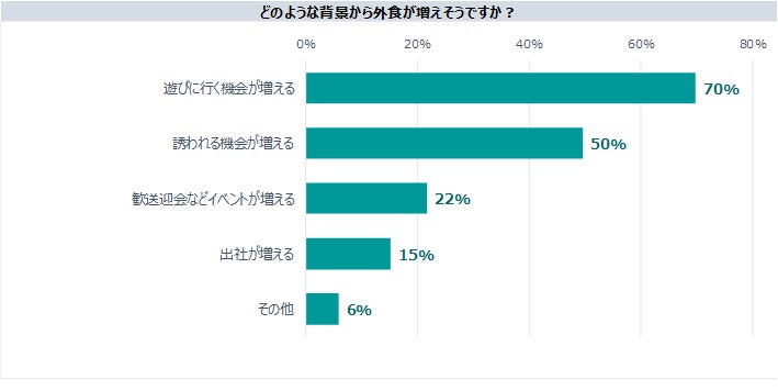 5. 68%が家族や友人との外食が増えそう。背景は遊びに行く機会が増えるため。