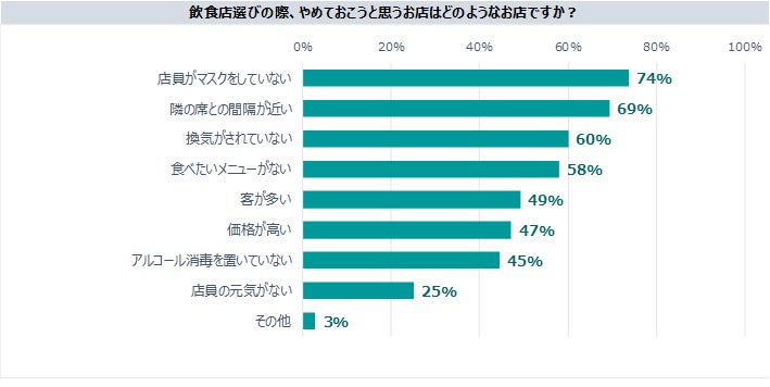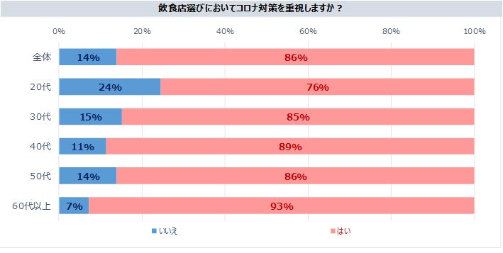 昨年11月に行った居酒屋についての調査( https://www.j-roi.com/news/research/research-izakaya13-12.html )から約半年以上経ちましたが、コロナが落ち着いてきている現在も飲食店を選ぶ際にコロナ対策を重視している人が86%、特にやめておこうと思う飲食店は「店員がマスクをしていない」「隣の席との間隔が近い」という回答が多い結果となりました。