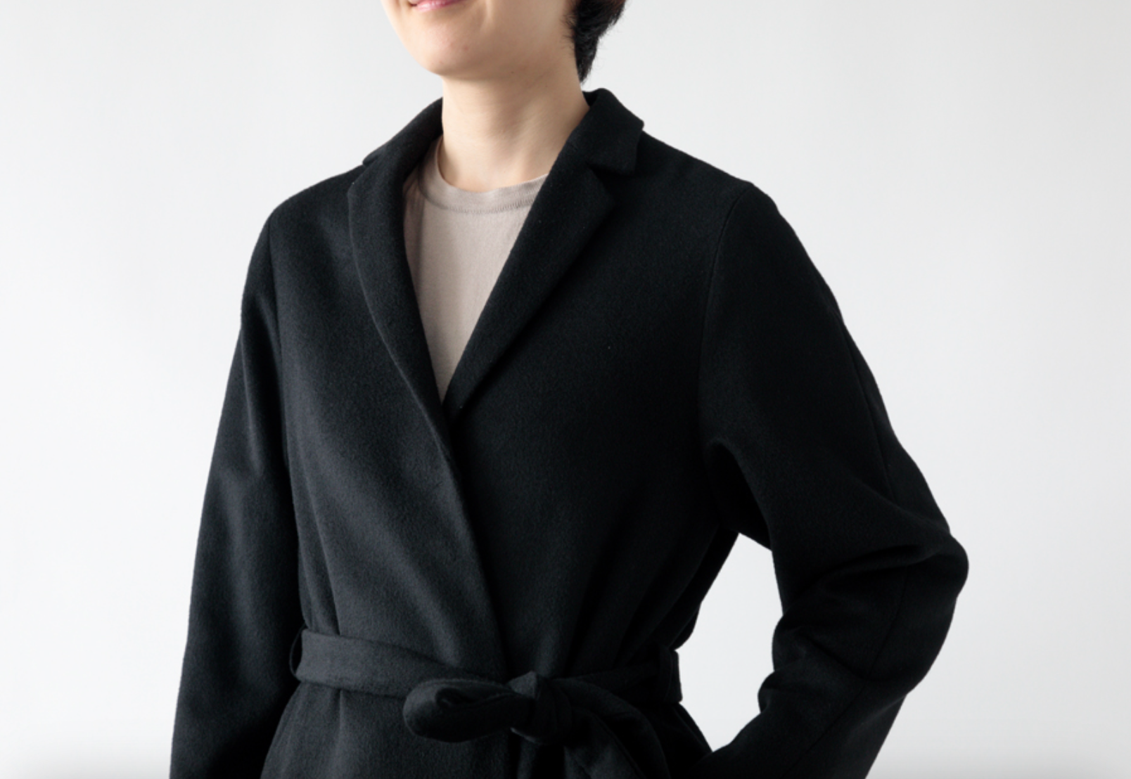 国内屈指のレディースフォーマルの工場「ソーイングアサヒ」が仕立てるベーシックなコートは、10年後・20年後も愛用していただけるはず。