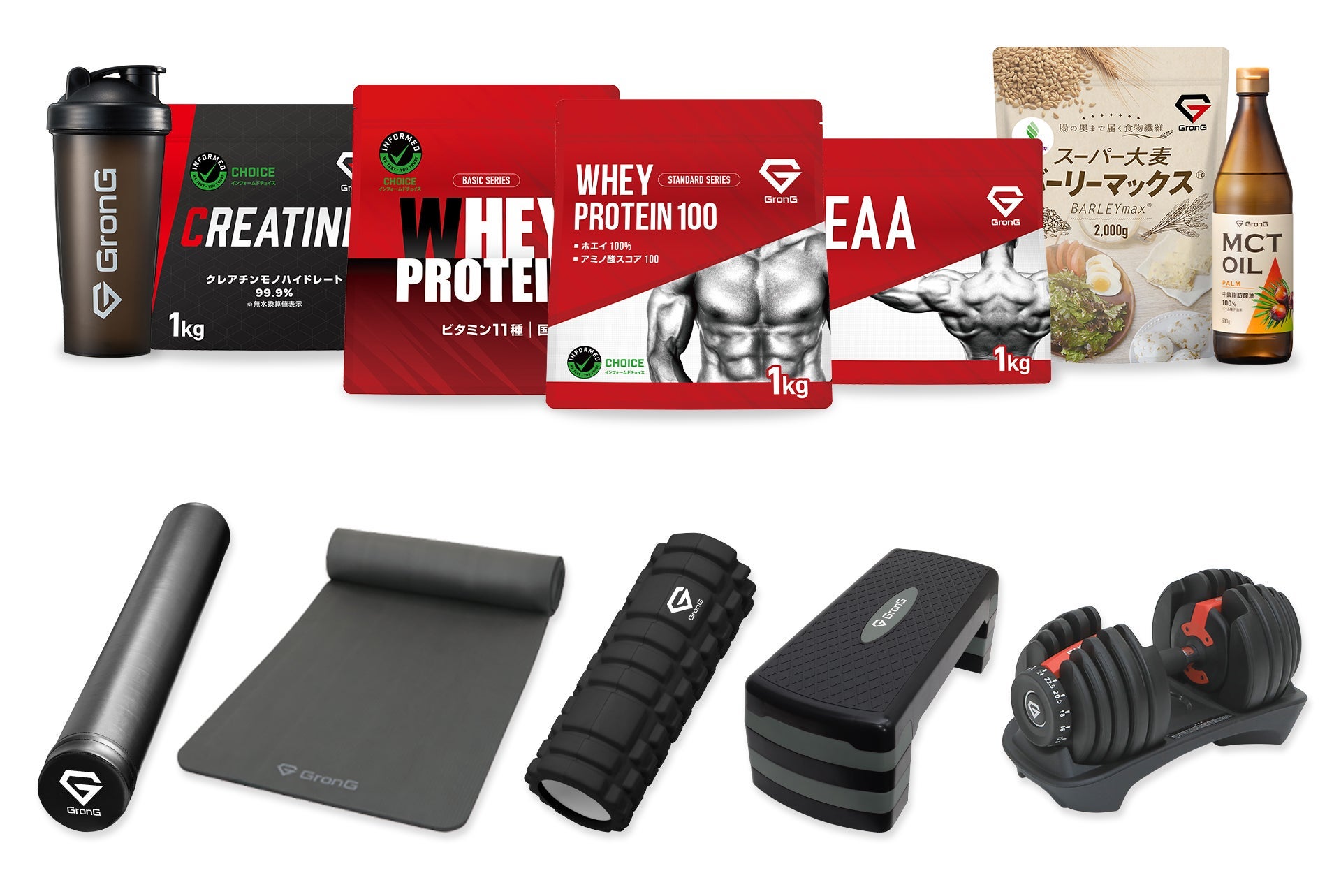 GronGは、2016年5月に家庭用のトレーニング・エクササイズ器具を取り扱うブランドとして創設されました。ヨガマットやストレッチ用ポールなどのほか、2017年にはバーベルなどの大型器具、2019年にはプロテインをはじめとするサプリメントの開発もおこない、主に通販サイトで商品を販売してきました。2022年には24時間型ジム「GronG GYM 24」も開店。現在までで近畿地方で3店舗運営し、約1,900名のお客様にご利用いただいています。さらに、社内の専門家による情報発信にも注力しています。ストレッチなどの方法を発信するYouTubeチャンネル「前田のまいにちセルフケア!by GronG」のチャンネル登録者数は約41万人(※2026年3月時点)となりました。こうした取り組みで、GronGは10年間に渡り、カラダづくりのさまざまな場面でお役立ていただける商品・サービスを提供してきました。