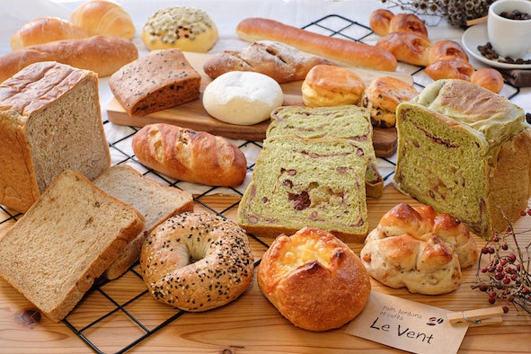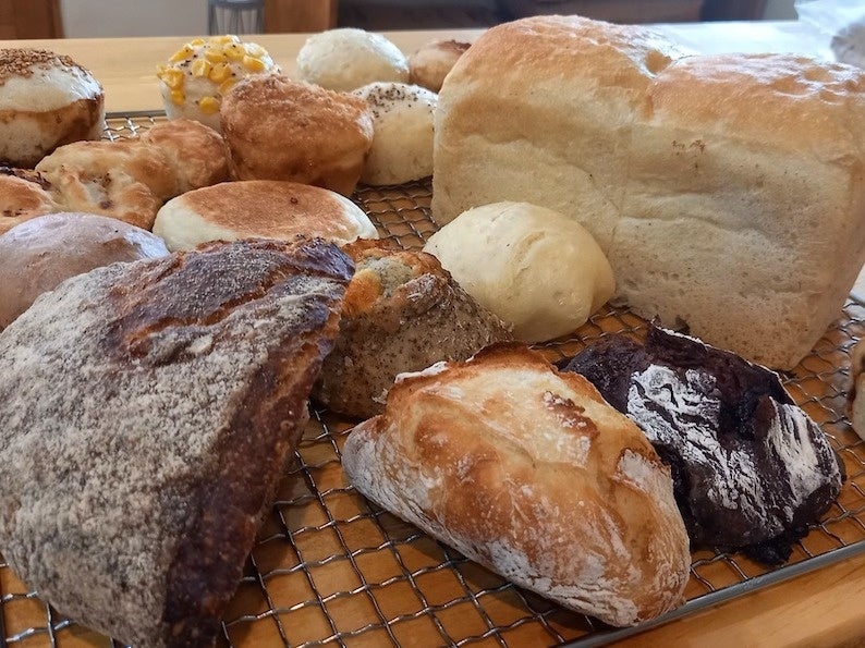 店名には、かすみ草の花言葉のようにお店のパンを食べて幸せになってもらという思いが込められているそう。北海道と熊本県の粉をはじめ、国産の原料を中心に使用し、手混ぜで生地を仕込んでいます。