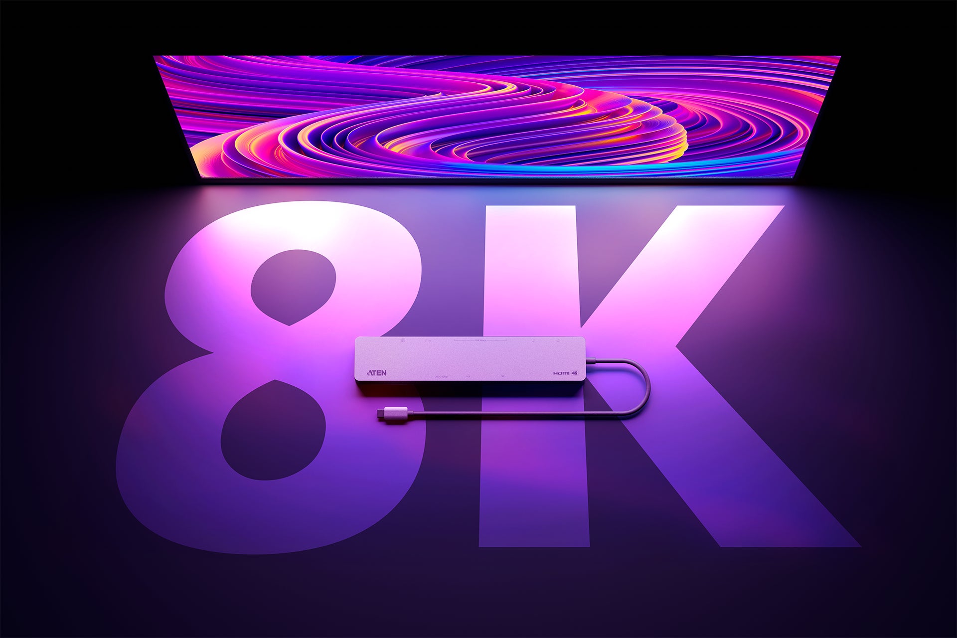 ATENの UH3240は、軽量でコンパクトなドックに多機能を搭載し、洗練されたデザインと業界最長クラスの40cm USB-Cケーブルを組み合わせることで、ユーザーに最高の柔軟性と利便性を提供します。最大100Wのデバイス充電を可能にするとともに、USB 3.2 Gen 1準拠で最大5Gbpsのデータ転送速度を実現します。生産性を高めるために設計された本製品は、デュアルスクリーンでの拡張またはミラーリングに対応し、最大4Kの解像度をサポートします。また、シングルスクリーンの場合には4K120Hzでの表示が可能で、高リフレッシュレートにより、ゲームやエンターテインメントの用途にも最適です。