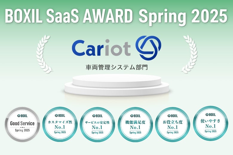 株式会社キャリオット(本社:東京都港区、代表取締役社長 齋藤 洋徳、以下「キャリオット」)が提供する車両動態管理システムCariot(キャリオット)は、今最も評価されているSaaS(※1)を表彰する「BOXIL SaaS AWARD 2025」において、BOXILセクション車両管理システム部門1位に選出されました。