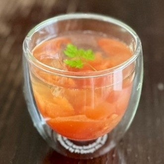 夏場でも美味しくおだしをいただけるオリジナルメニュー「おだしとトマトの冷製ジュレスープ」をご用意いたしました。