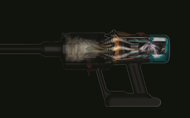 ダイソンのエンジニアは、目に見えるホコリだけでなく、目に見えないホコリも確実に取り除くために、約30年間にわたり、優れた密閉性を捕集設計の研究開発に取り組んできました。ダイソンのコードレス掃除機は、優れた密閉性と5段階の捕集設計により、0.1ミクロンもの微細な粒子を99.99%まで捕集し、浄化された空気を排出します。*³