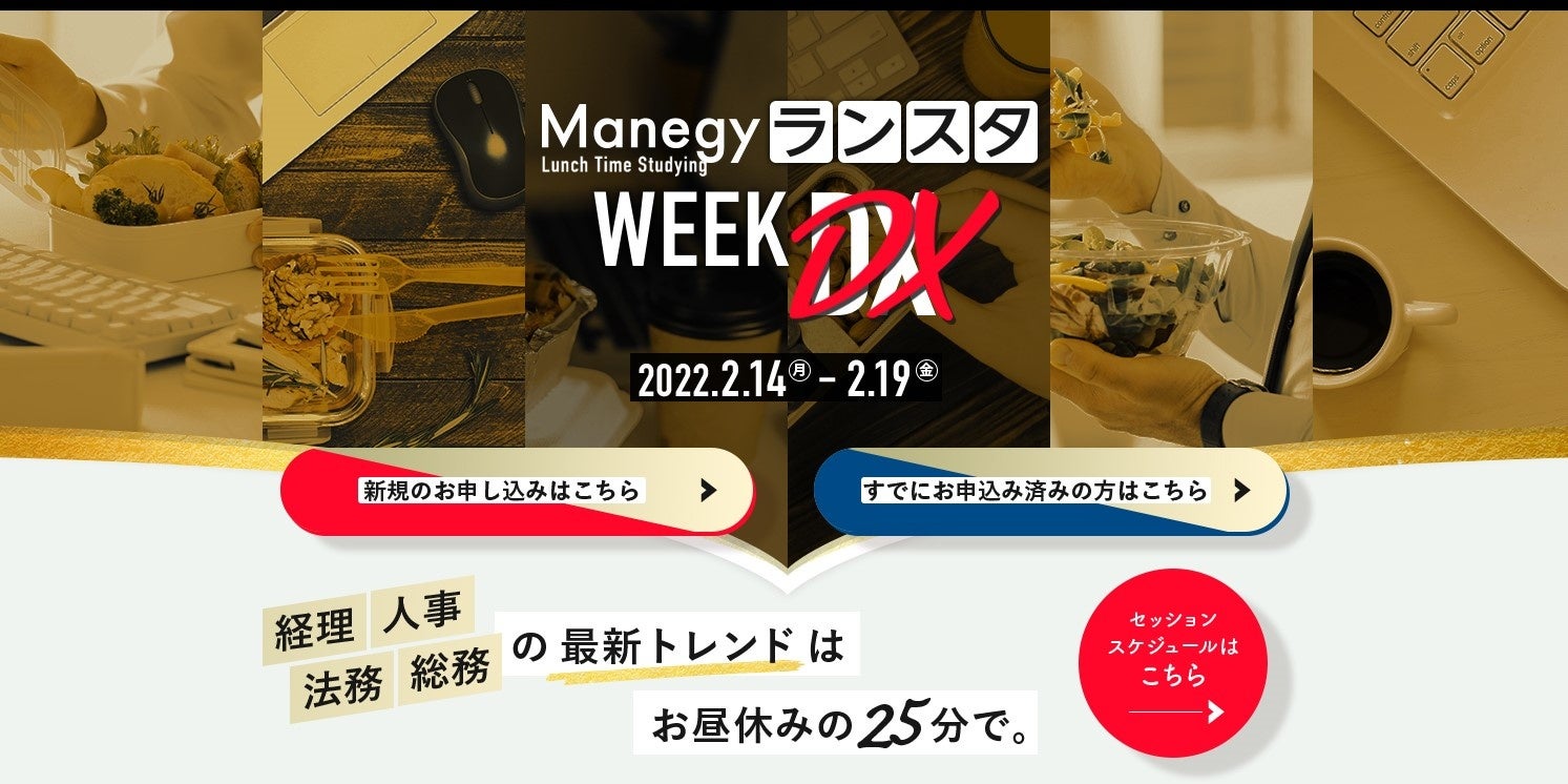 株式会社 MS-Japan(本社:東京都千代田区 代表取締役社長:有本隆浩/以下 MS-Japan 証券コー ド:6539)が運営する管理部門と士業のためのビジネスメディア「Manegy」にて、ランチタイムに気軽に学べるウェビナーイベント『第5回ManegyランスタWEEK DX』の開催を決定いたしましたのでお知らせいたします。