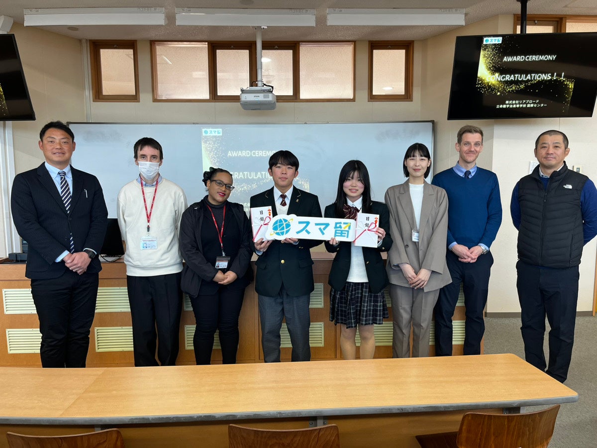 「Make The World Your Stage .」をブランドフィロソフィーに掲げ、海外留学エージェント「スマ留」を運営する株式会社リアブロード(本社:東京都渋谷区、代表取締役社長:神田慎 以下、リアブロード)は、2023年12月22日に立命館宇治高等学校で選出された2名の高校生へ「留学奨学金」授賞式を実施しました。さらに、受賞者2名に密着したドキュメンタリー映像も作成。渡航前の不安な思いや留学中の様子など、リアルな高校生の声をお届けします。初めての留学で、不安と期待が入り混じった状態で海外へと飛び立ち、慣れない環境の中で戸惑いを見せる様子が収録されています。ドキュメンタリー映像では、留学を経て受賞者2名が「挑戦をする大切さ」について語る姿もあり、リアブロードのビジョン「みんなの成長をつくる」が体現されています。