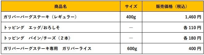 ※ガリバーバーグステーキ専用「ガリバーライス」は、「ガリバーバーグステーキ」ご注文のお客様のみご利用いただけます。