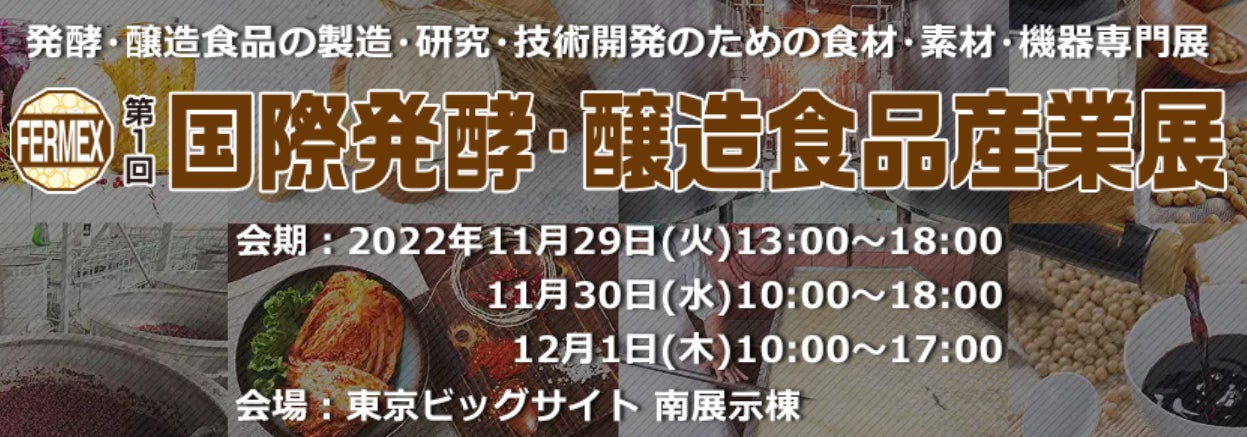 【発酵食品】【醸造食品】は、食材を微生物などの作用で発酵させることによっての味の向上、保存性の向上、食材や調味料などの生成、更には健康への効果増大などの様々なメリットを向上させることのできる食品産業の中でも最も歴史の古い加工食品です。日本の誇る発酵・醸造食品産業の発展と拡大に寄与することを目的に、発酵・醸造に関わるあらゆる食材、素材、研究機器、製造設備、検査機器、パッケージ製品を展示します。