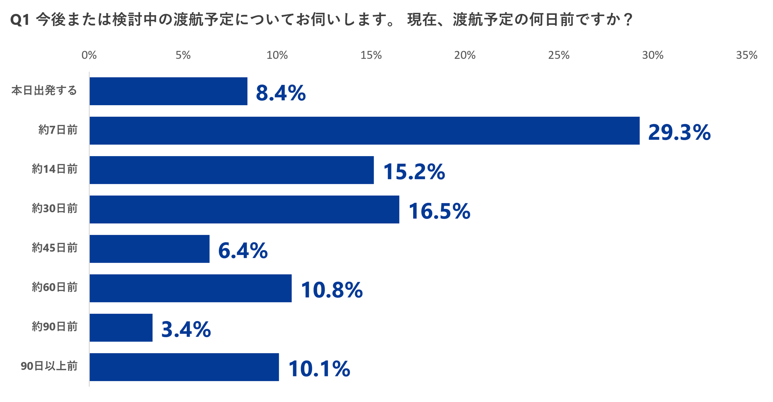 渡航の「約7日前」から、海外旅行保険を検討する方が最多の29.3%。