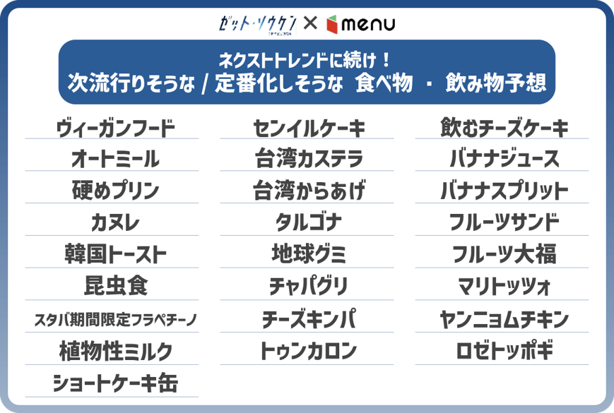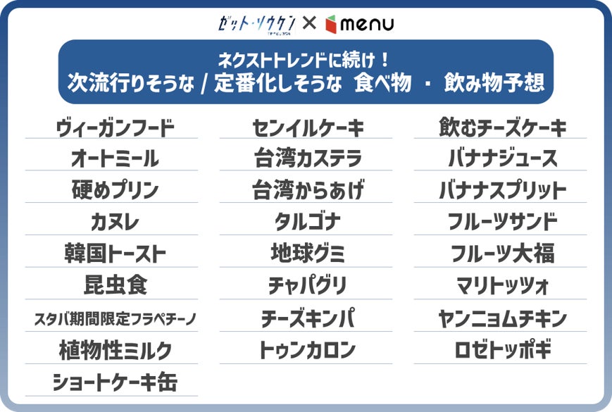 - ゼット・ソウケン×menu 「Z世代 ネクストブレイク・グルメ2022」トップ5
