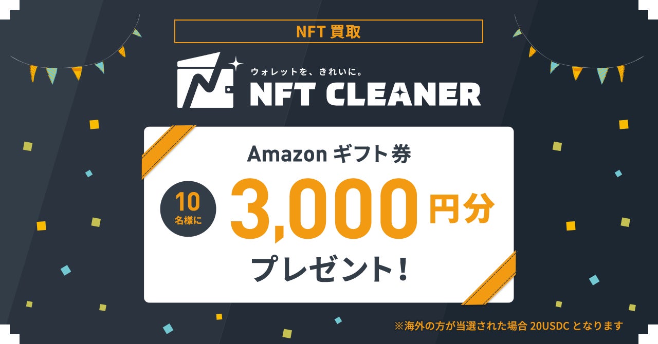 NFT買取サービス「NFT Cleaner(α版 )」がリリース、Amazonギフト券3,000円が10名様に当たる4週連続プレゼントキャンペーン開催中