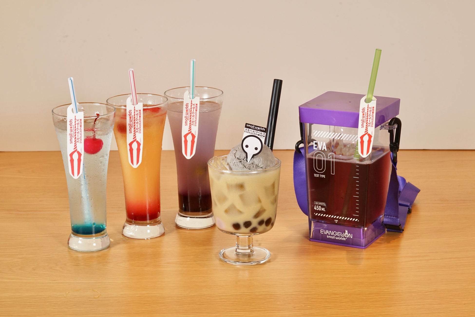 ミュージアムカフェではエヴァンゲリオンコラボメニューをご提供します。A.T.フィールドディッシュ、エヴァ各機のイメージのドリンクや、第4の使徒をイメージしたドリンクがあります。また、コラボドリンクを注文された方に特製コースターをプレゼント。コースターは2つの絵柄の両面印刷の豪華版です。またオリジナルスイーツには特製トレーシートをプレゼントいたします。