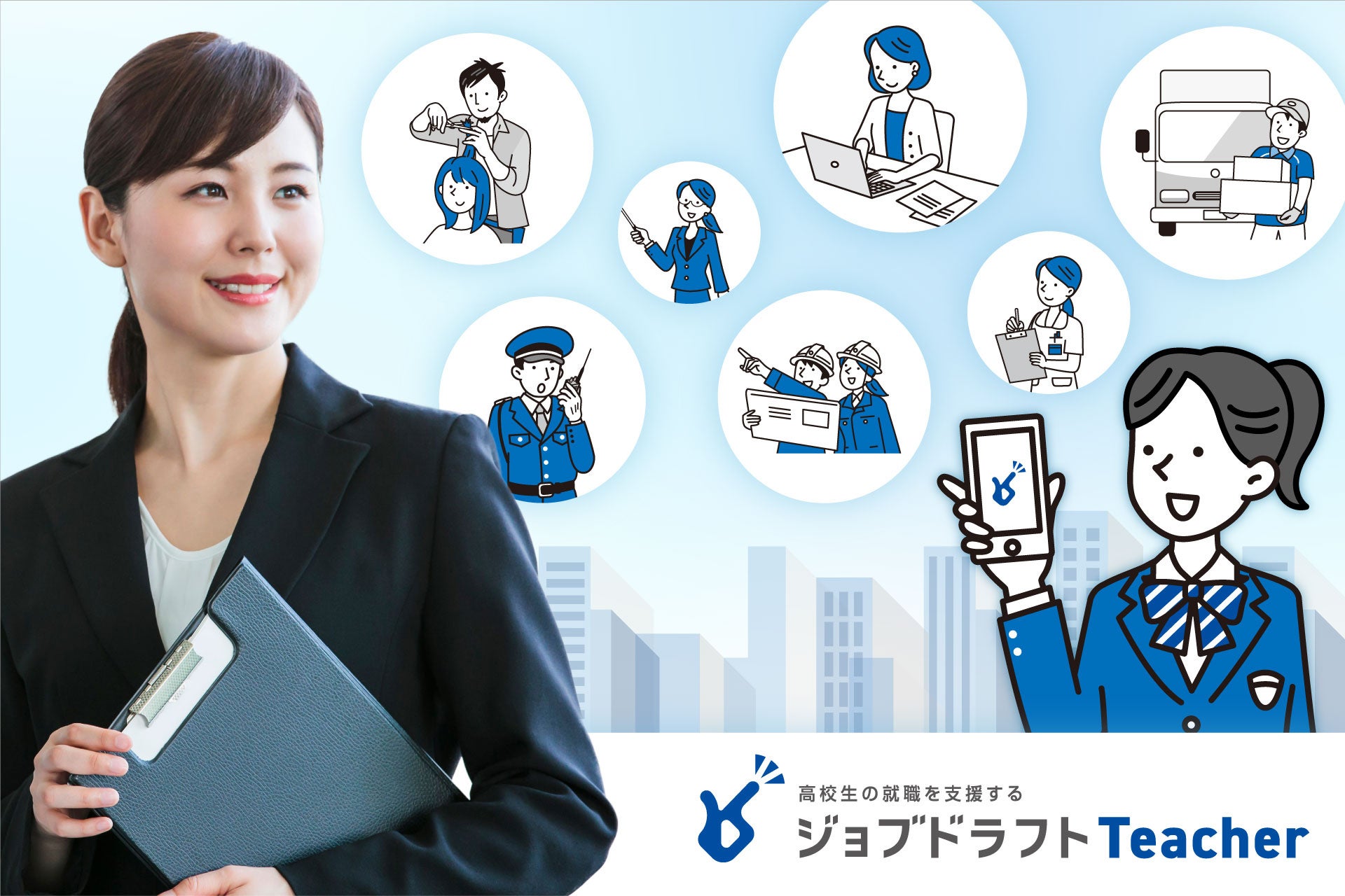 これまでの仕組みや、ノウハウを生かして、このたび、高校に届く紙の求人票をデジタル化するシステム「ジョブドラフトTeacher」をリリースすることにいたしました。このシステムの機能を拡充することで、先生と高校生が就職活動をしやすい環境を提供してまいります。
