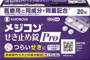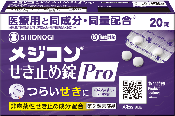シオノギヘルスケアのProシリーズである、パイロンPL顆粒Pro、メジコンせき止め錠Pro、アスベリンⓇせき止め錠Pro20、ムコダイン去たん錠Pro500は、医療用と同じ有効成分を同量配合※した医薬品です。つらいのどの痛み、熱、鼻みずなどかぜの複合症状に効く「パイロンPL顆粒Pro」、せき症状に特化した15才から使える「メジコンせき止め錠Pro」と8才から使える「アスベリンⓇせき止め錠Pro20」、たん症状に特化した「ムコダイン去たん錠Pro500」を展開しています。