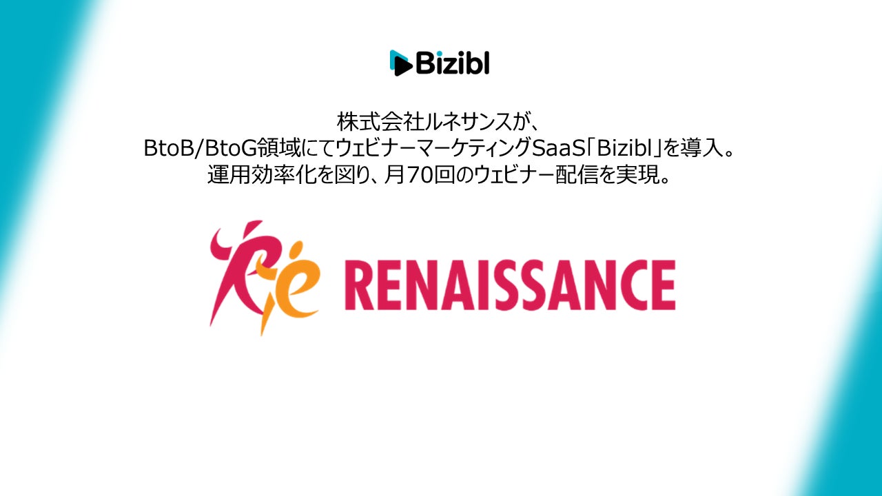 株式会社ルネサンスが、BtoB/BtoG領域にてウェビナーマーケティングSaaS「Bizibl」を導入。運用効率化を図り、月70回のウェビナー配信を実現。