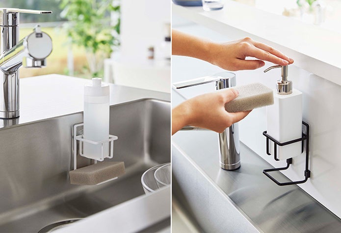フィルムフックで取り付け可能なスポンジホルダーや、ロール型のウェットティッシュをしっかりと密閉できるケースなど、新商品発売。