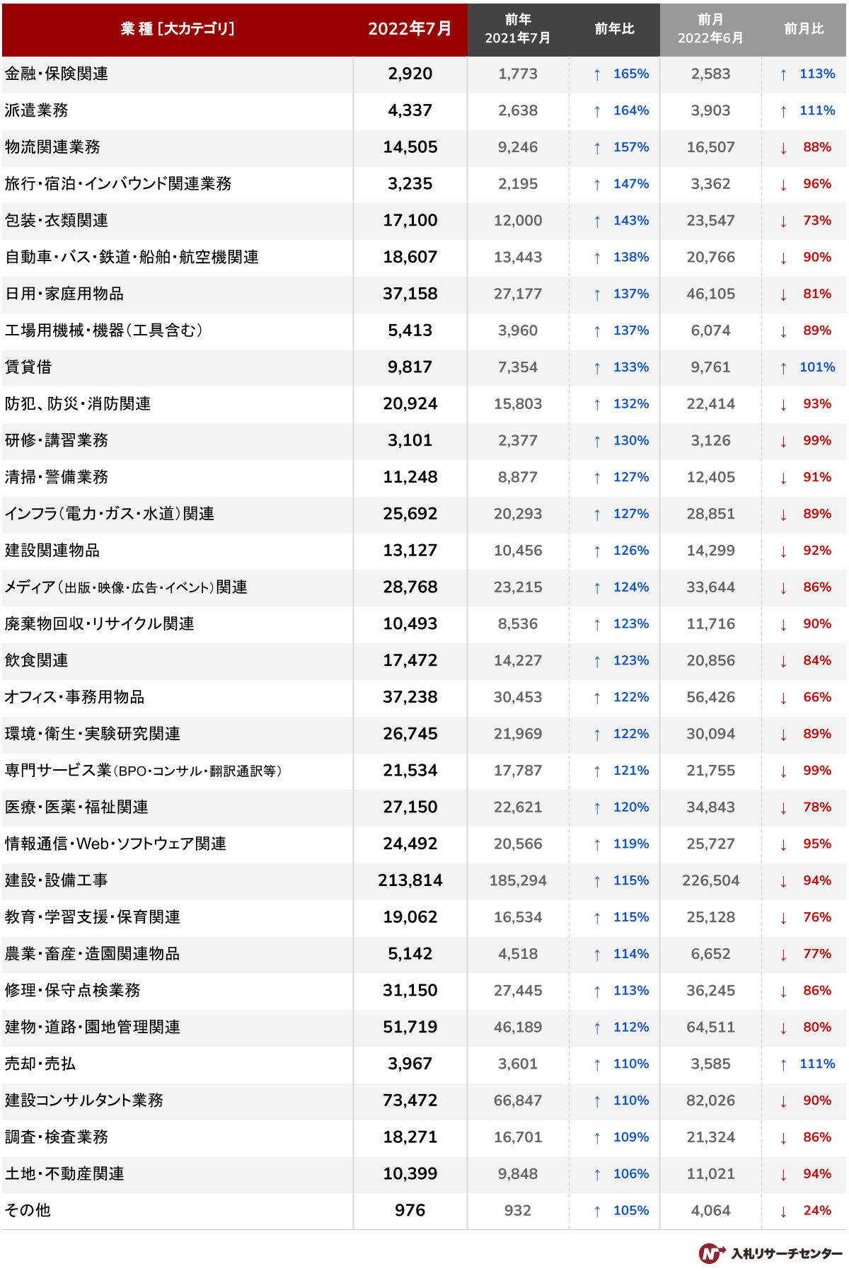 調査名:入札リサーチセンターマンスリーレポート(2022年7月度)