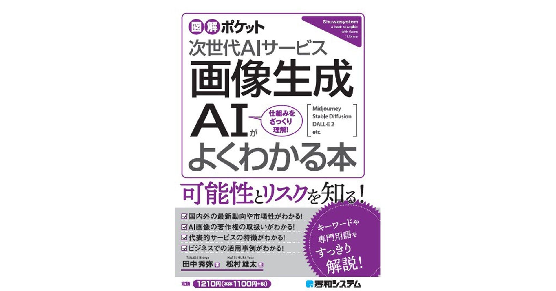テキストを入力しただけでイメージどおりの画像を作ることのできる画像生成AIは、注目のAIサービスとして大きな話題になっています。趣味やビジネスでの利用が広がる一方で、生成した画像の著作権の問題やアーティストの仕事を奪うのではないかといった議論も起きています。本書はそんな画像生成AIについて、仕組みや使い方のほかビジネスでの活用事例や著作権の取り扱いまで、押さえておきたい知識をわかりやすく解説します。