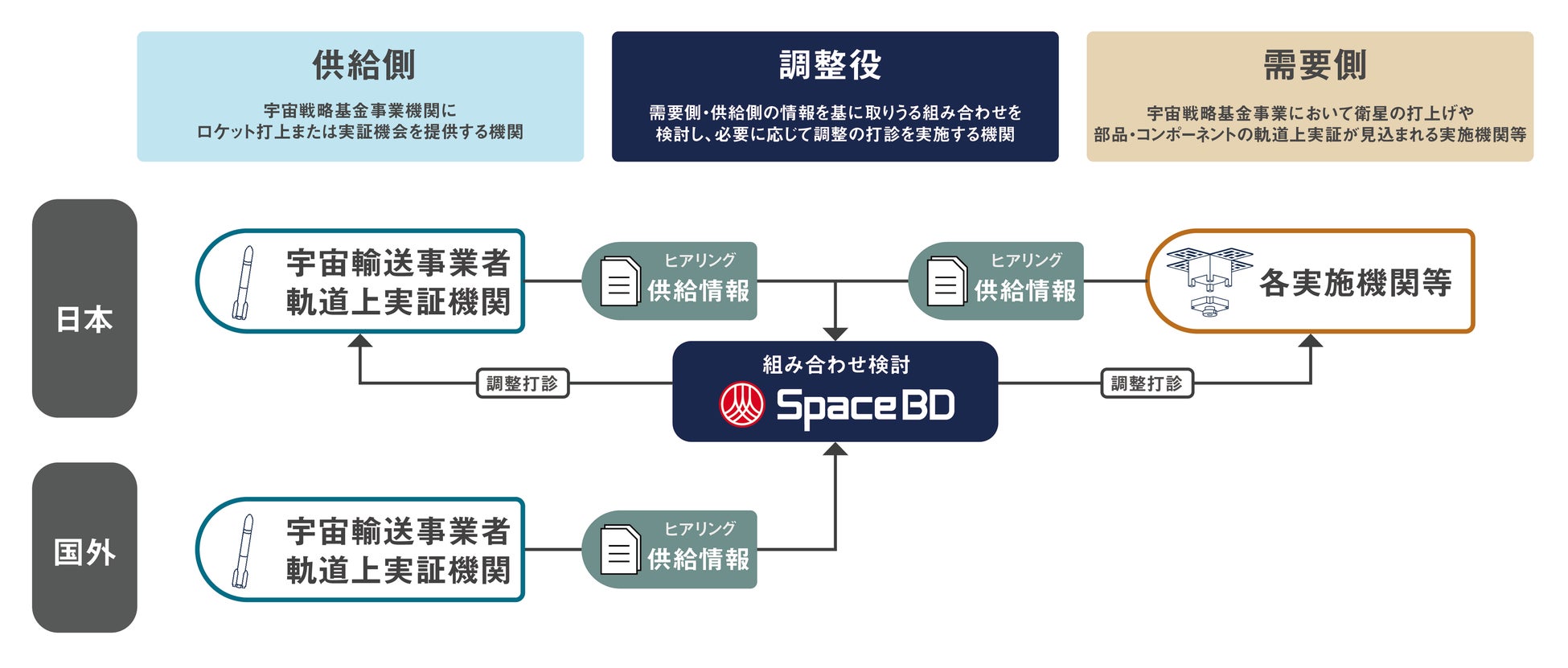 Space BDは本業務を通じ、国内の宇宙関連事業者による、国内の宇宙輸送・実証機会の利用等を促進し、衛星・宇宙輸送システムの産業基盤発展に寄与することを目指しております。