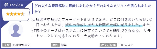 - 「ITreview」に寄せられたユーザーからのレビュー