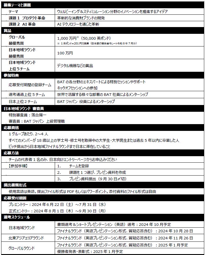 BATジャパン(正式名称:ブリティッシュ・アメリカン・タバコ・ジャパン合同会社、本社:東京都港区赤坂、社長:エマ・ディーン)が主催する、世界25の国と地域を対象にビジネスアイデアを募集する大学生・大学院生向け国際ビジネスコンテスト「Battle of Minds 2024(バトル・オブ・マインズ 2024)」の日本地域ラウンドの特別審査員が、メディアアーティストの落合陽一氏に決定いたしました。