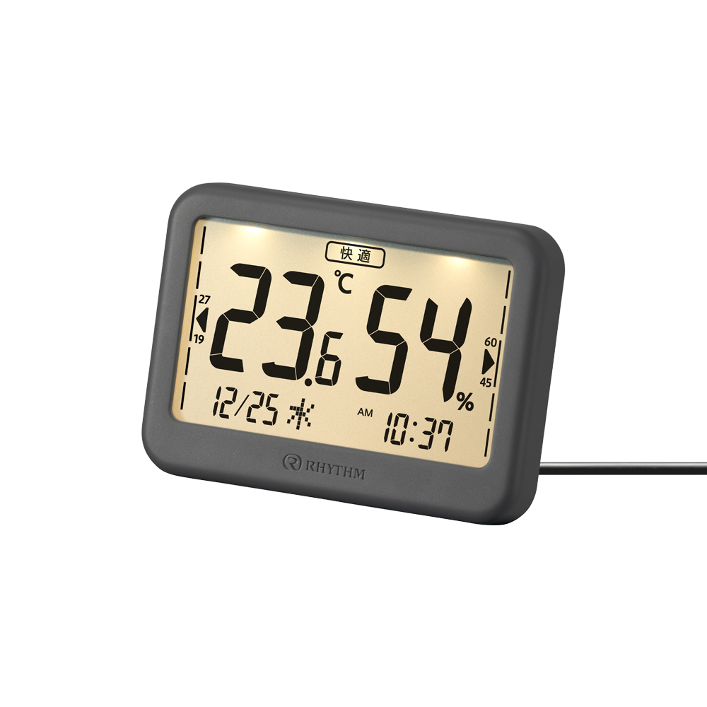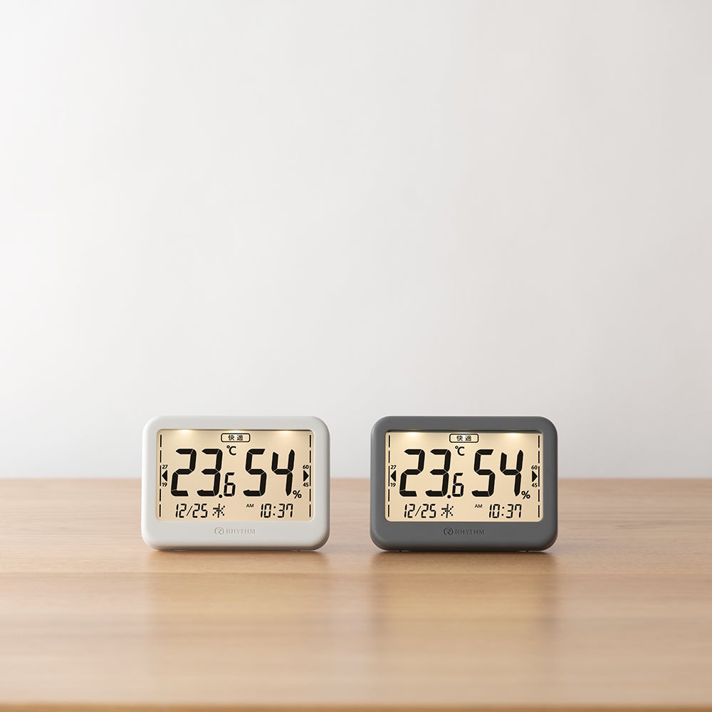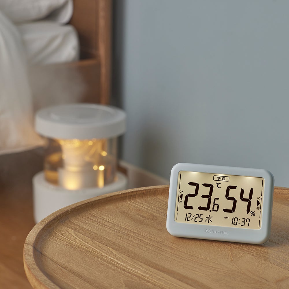 いつでも見やすい、体調管理に役立つくつろぎの温湿度計