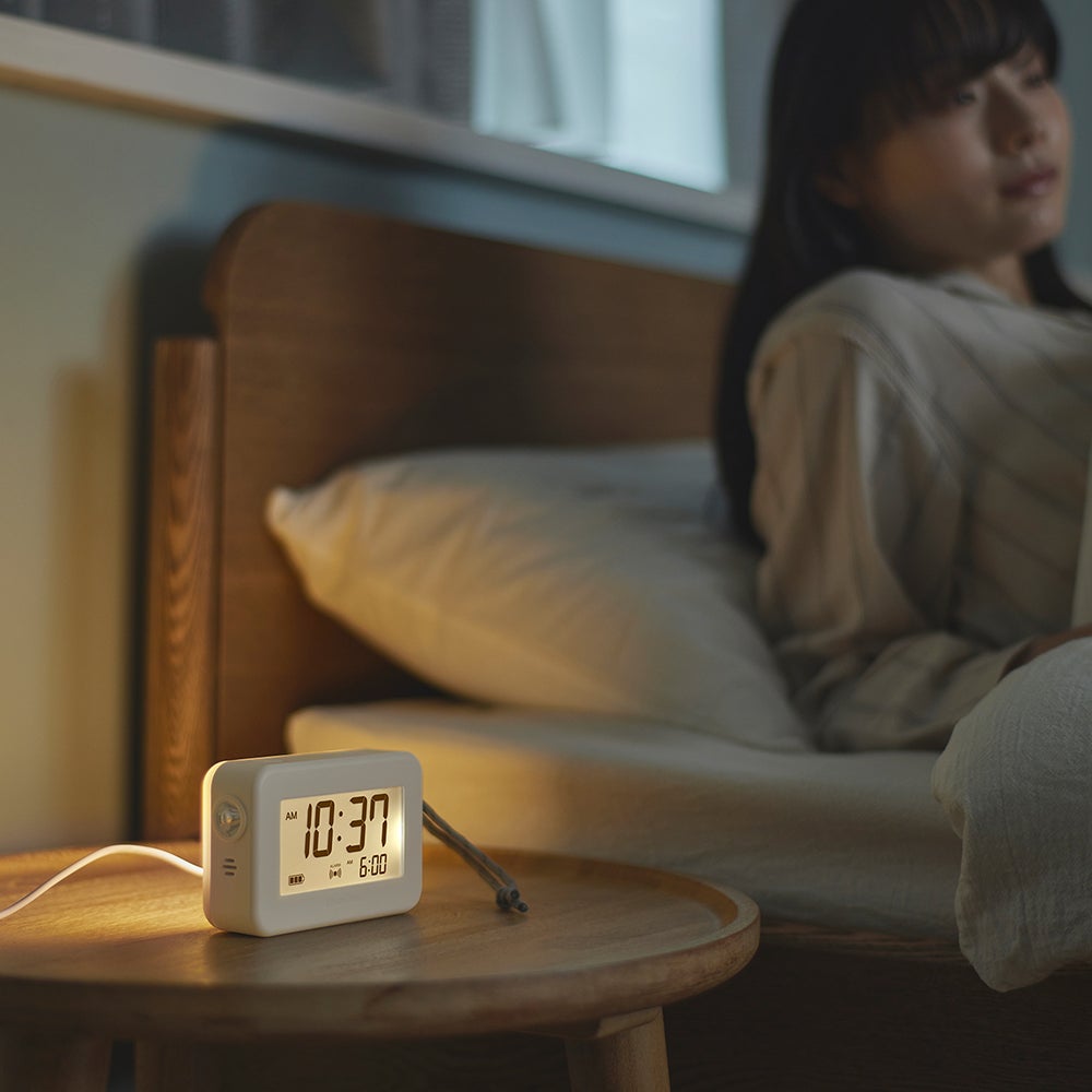 急な停電で真っ暗になってしまった時、周りの状況を確認するためにも、心を落ち着かせるためにもすぐにあかりが必要です。そこで開発した、ふだんからライト付きのデジタル時計として使用でき、もしもの時に電気供給がなくなってもあかりが点灯するランタン。あかりでくつろぎの時間をお楽しみいただきながら、もしもの時に備えることができます。