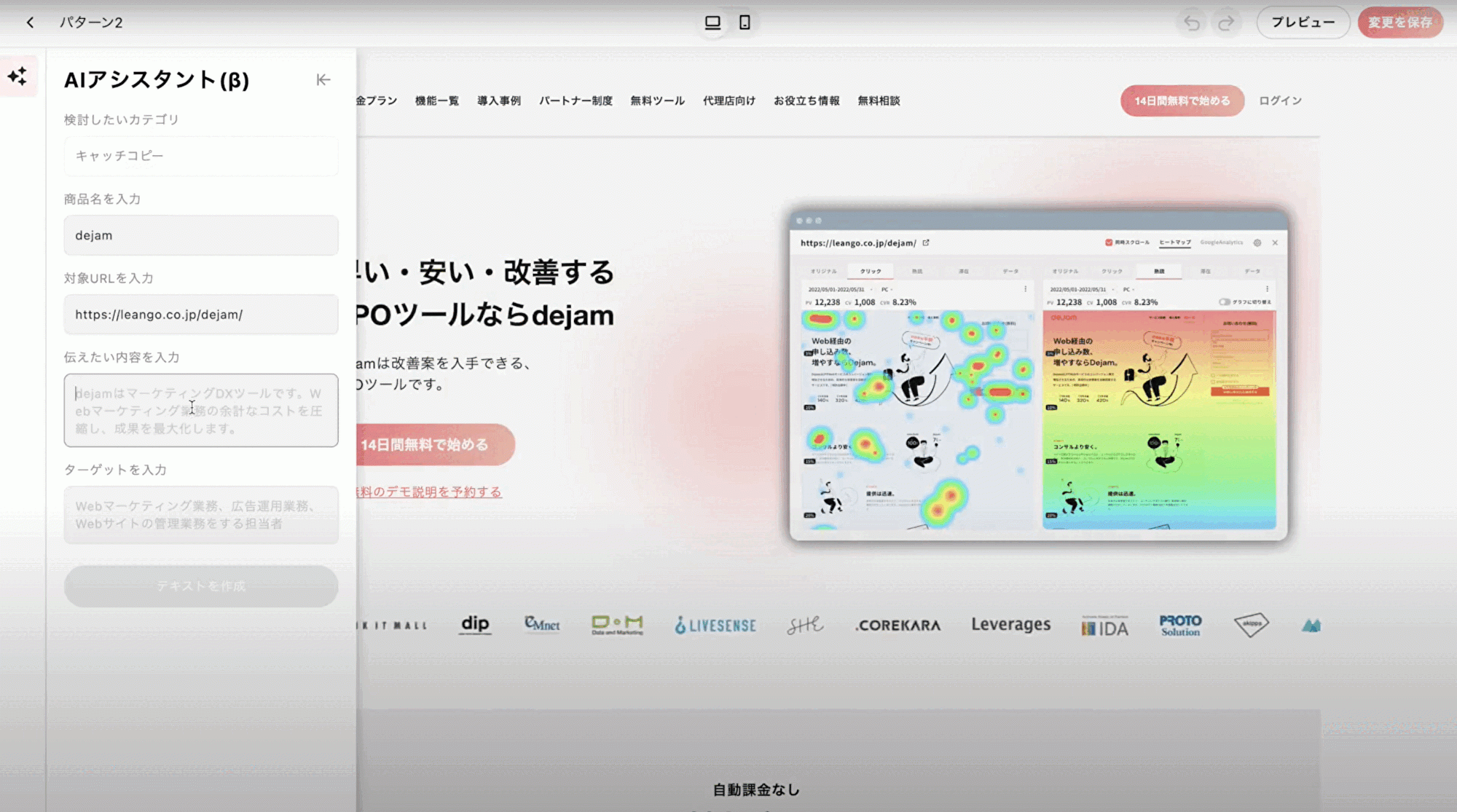 ABテストパターンが自動提案されるAIアシスタント機能がリリース!マーケティングDXツール「dejam」