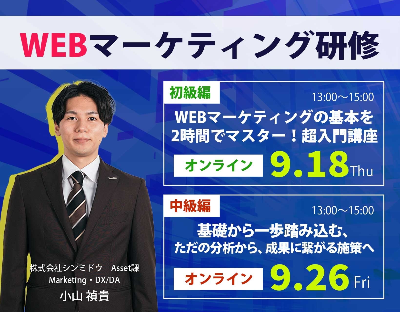 株式会社シンミドウ(本社:埼玉県さいたま市、代表取締役:笹田知弘)は、2024年9月18日(木)と9月26日(金)に、『WEBマーケティング研修』の開催を決定しました。