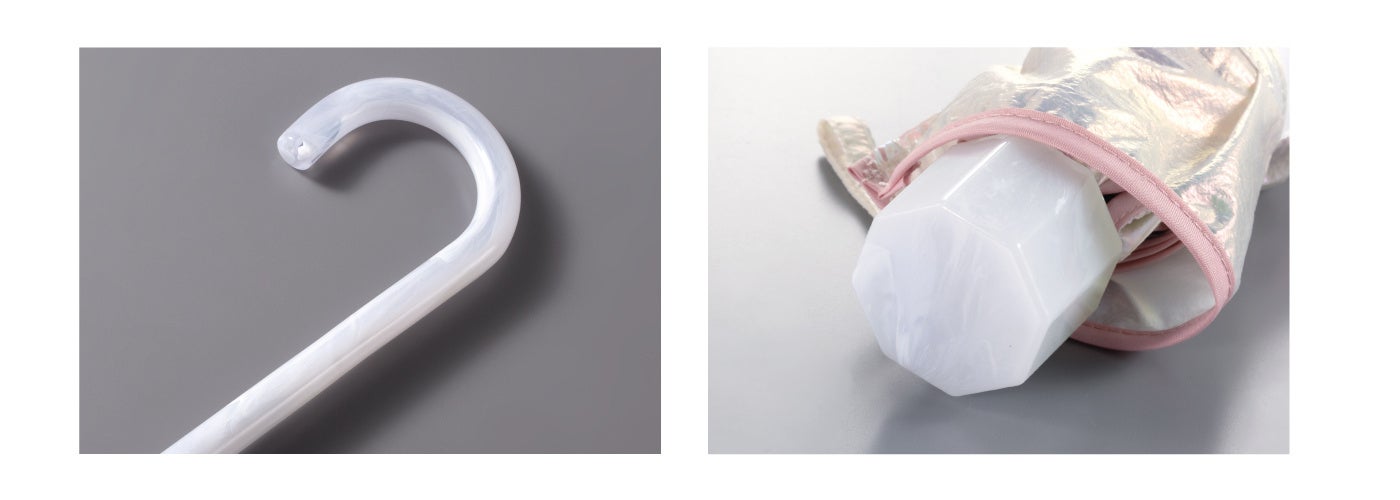 大人でも違和感なく持てるデザインにしたいという想いから、輝き方が柔らかく、上品な印象を持つパールに着目しました。一目で可愛い!と思ってもらえるような、誰もがときめく傘に仕上げています。