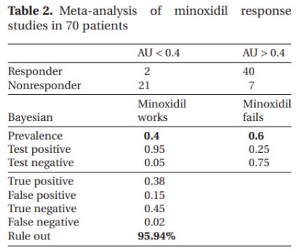 Wiley Publishingの論文では、男性型脱毛症(AGA)に対するミノキシジル治療の効果を予測するための診断テストに関する研究が紹介されています。ミノキシジルの効果を確認するには3~6か月の治療が必要であり、患者の約40%しか効果が見られません。