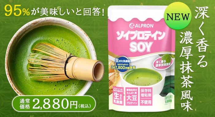 95%が美味しいと回答!実際にお客様が飲んで決定したソイプロテインが発売開始~ 深く香る濃厚抹茶 ~