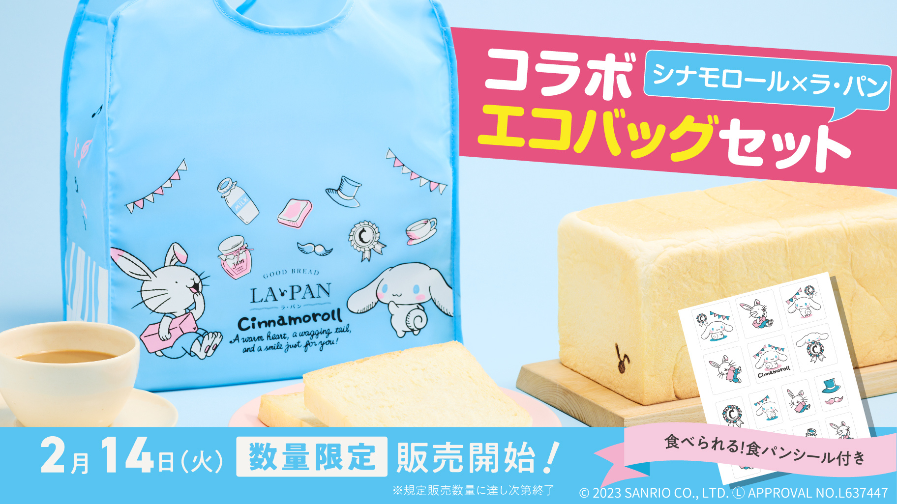 サンリオの大人気キャラクター × 高級クリーミー生食パン「シナモロール」×「ラ・パン」初めてのコラボレーション「シナモロール×ラ・パン 生食パン・食べられるシール付きエコバッグセット」