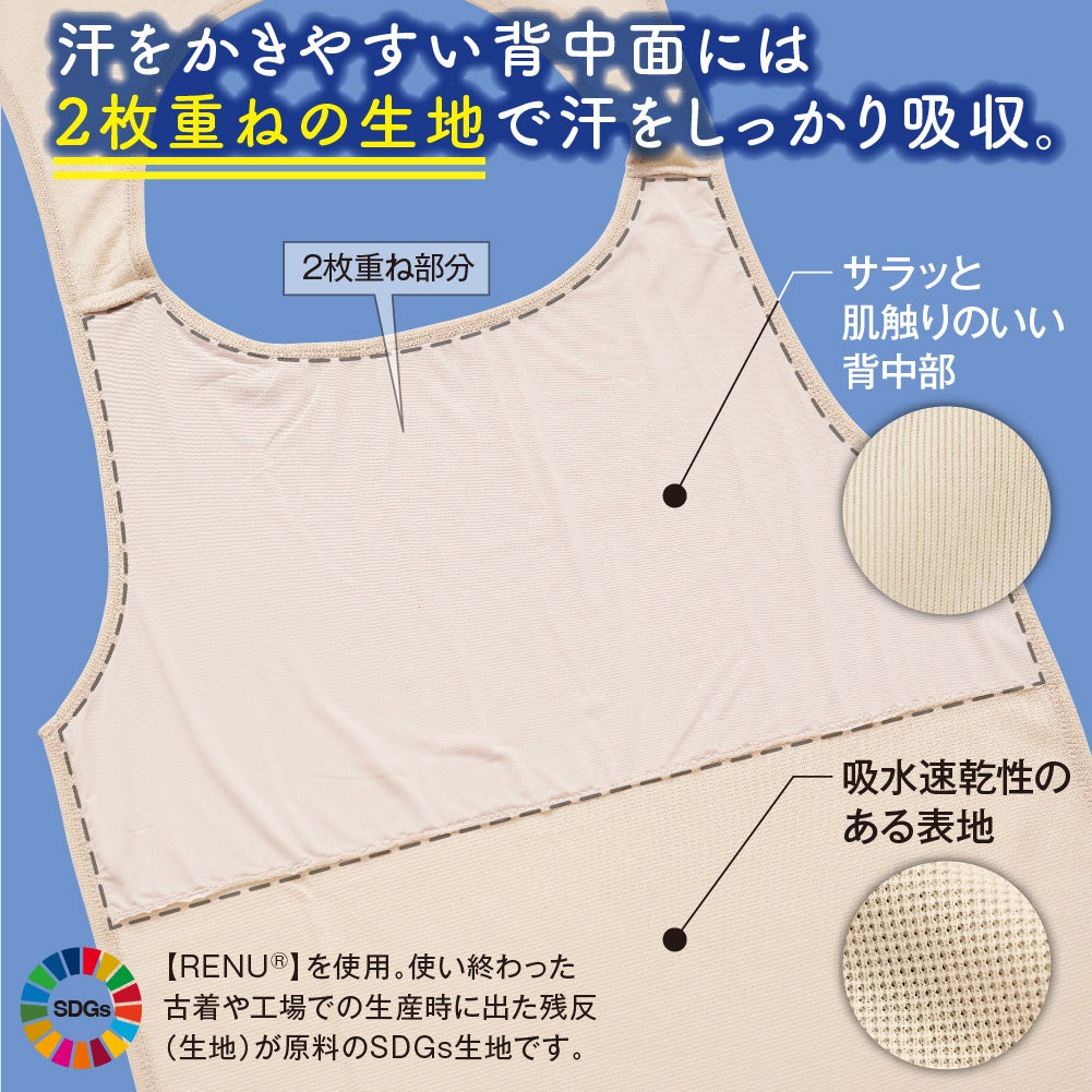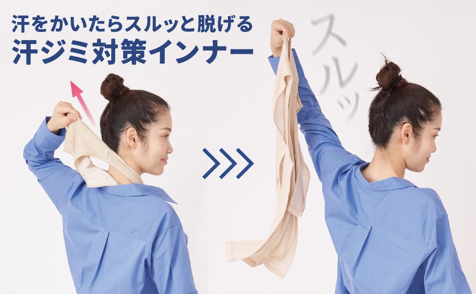 汗をかいたら服を着たままスルッと脱げる、SDGs生地を使用した汗ジミ対策インナー「サラッと快適 汗取りシャツ」新発売