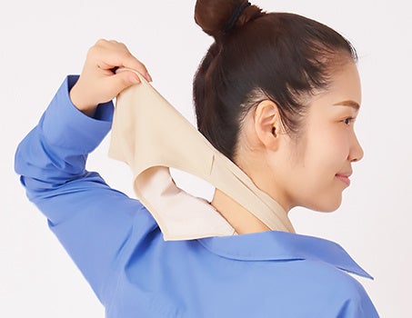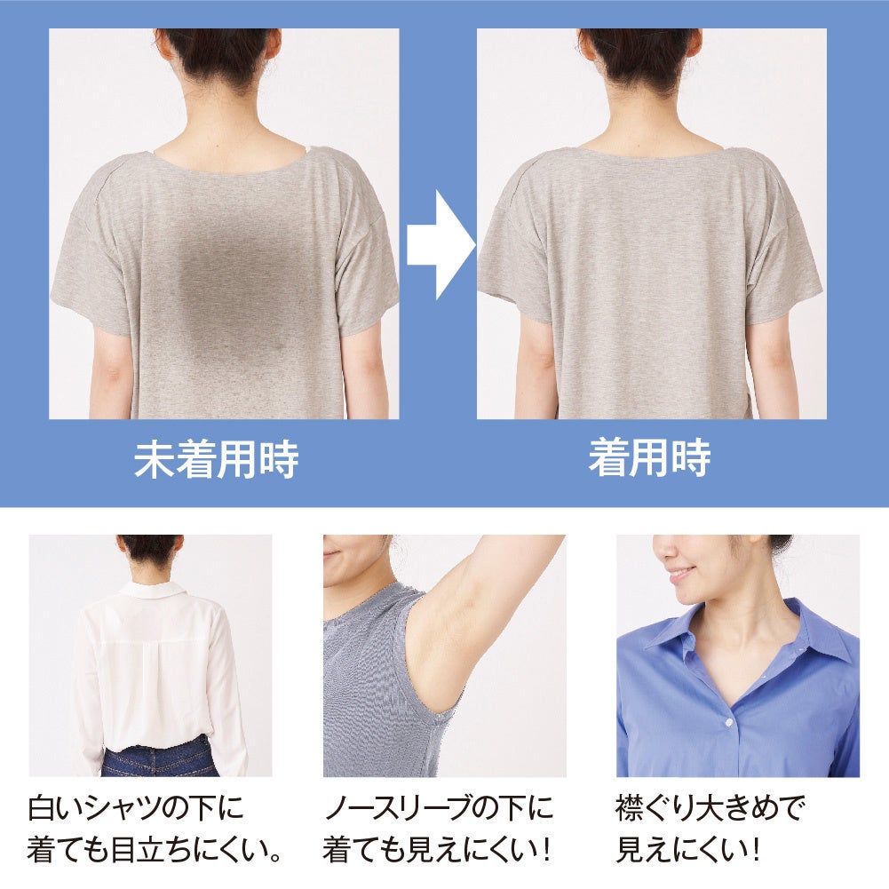 サイドが開いていて抜き取れる仕組みで、汗ジミや臭いが気になったら、外出先でも服を着たままスルッと簡単に首から抜き出して脱ぐことができます。