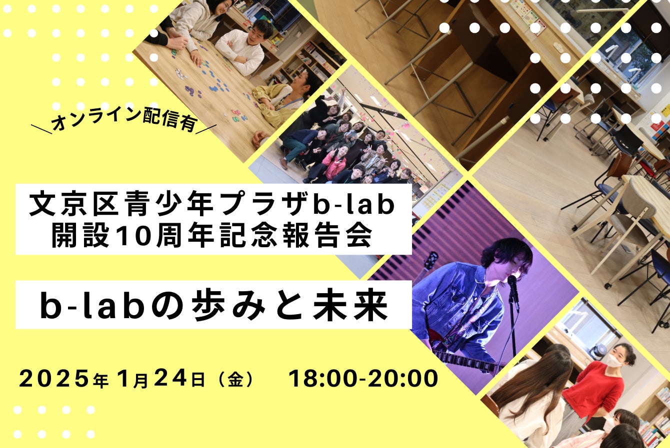 認定特定非営利活動法人カタリバ(本部:東京都中野区、代表理事:今村久美、以下カタリバ)が運営する文京区青少年プラザb-lab(ビーラボ)は、2024年度で開館から10周年を迎えました。この節目の機会に、b-lab10年間の歩みや、現利用者及び元利用者による報告、有識者による基調講演を行うイベントを1月24日(金)に開催することが決定。参加者の募集をスタートしたのでお知らせします。