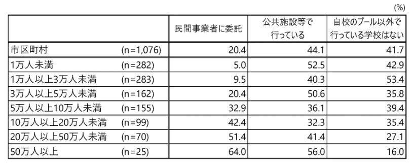 市区町村における小学校の水泳(プール授業)実施状況、「公共施設等で実施」約4割 「民間事業者に委託」約2割