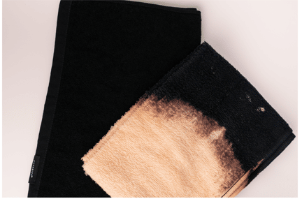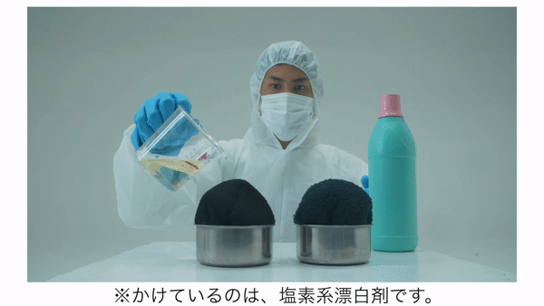 実験で塩素系漂白剤をかけた2枚を比べると一目瞭然!