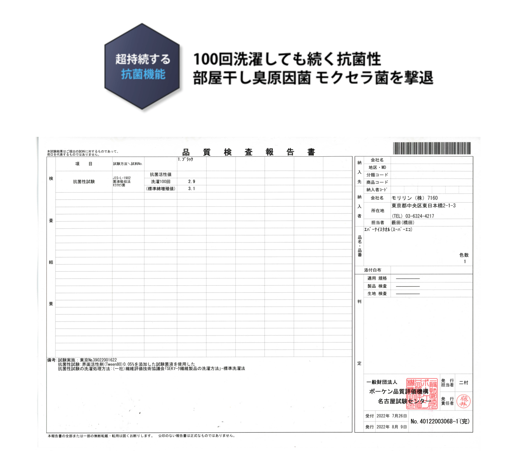 ▼100回洗濯後、新品同様の質感・対抗菌性の持続