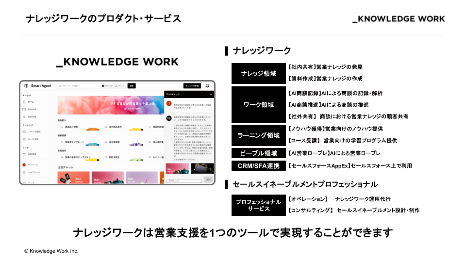 ■セールスイネーブルメントAI「ナレッジワーク」:営業力強化や営業生産性向上を1つのツールで実現