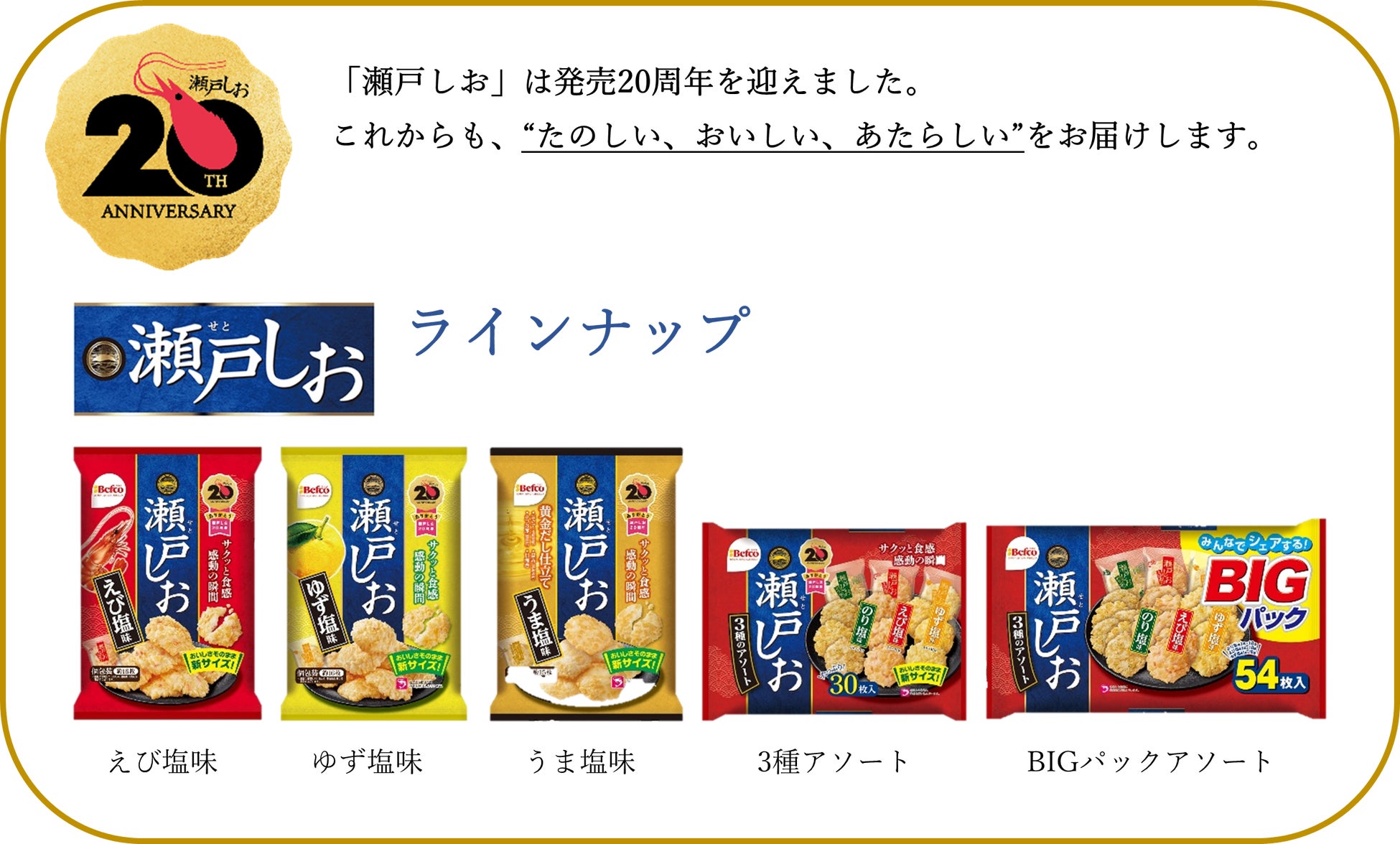 瀬戸しおは、多くの“瀬戸しおファン”の皆さまに愛され、支えられているブランドです。そして、ひと口でその美味しさが伝わる自信のあるお煎餅です。