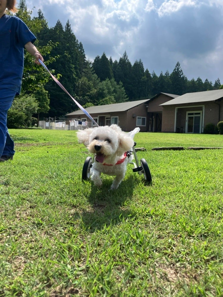 チャチャを「老犬」としてではなく、ひとりの明るく元気な存在として接してくださるスタッフの皆さんには、心から感謝しています。特注の車椅子を作ってくださったり、温かい声や笑顔で寄り添ってくださるその姿勢が、チャチャの生きる力になっています。叔母が安心して見守れる第二の家を作ってくださったことに、心から感謝しています。