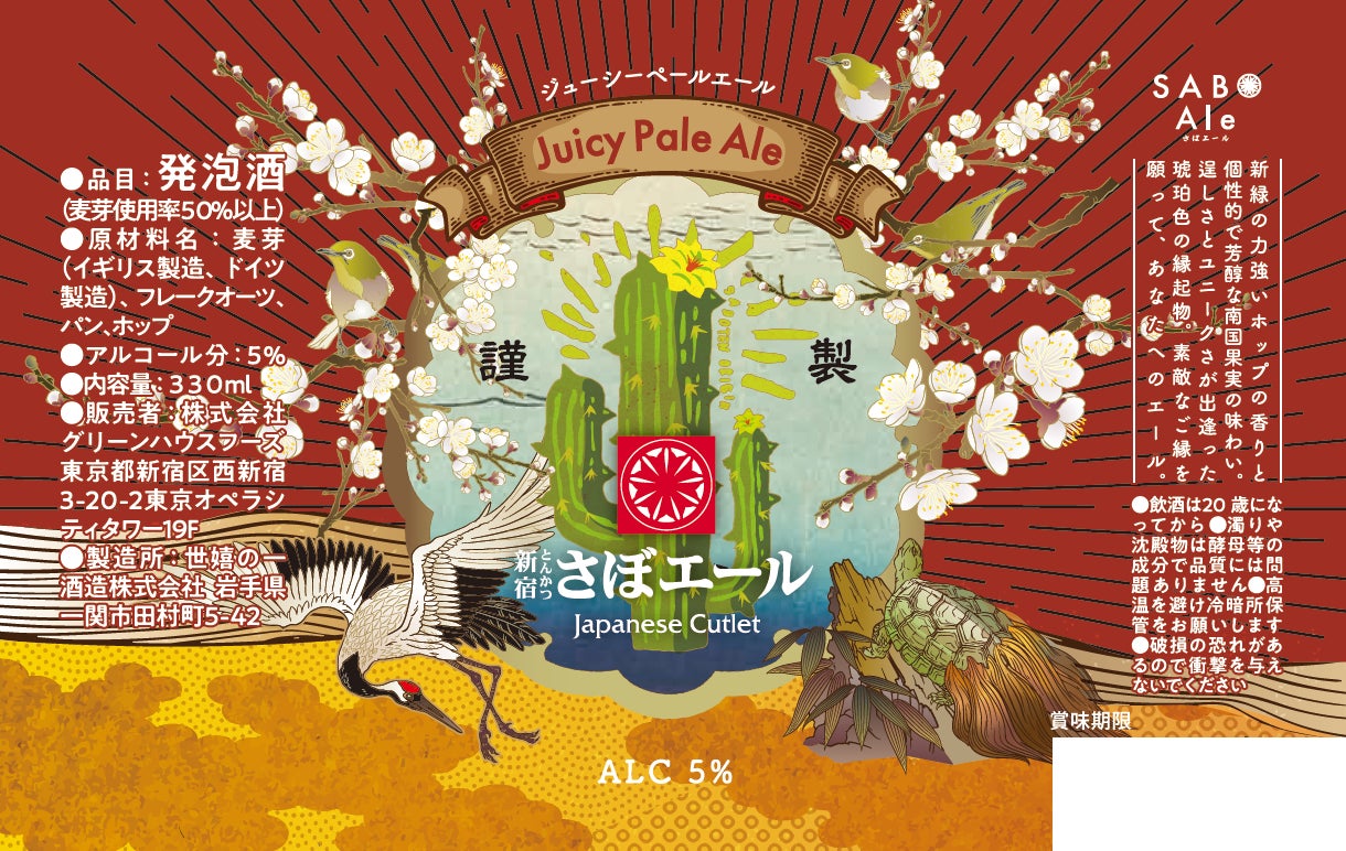 「さぼエール」の“エール”には、さぼてんからのエール(声援)、地球環境へのエール(応援)という意味も込められています。商品ラベルには、はじけるように開花する花、縁起が良い鶴、亀をあしらい、日常にも、四季折々のお祝いごとにもぴったりな商品となりました。