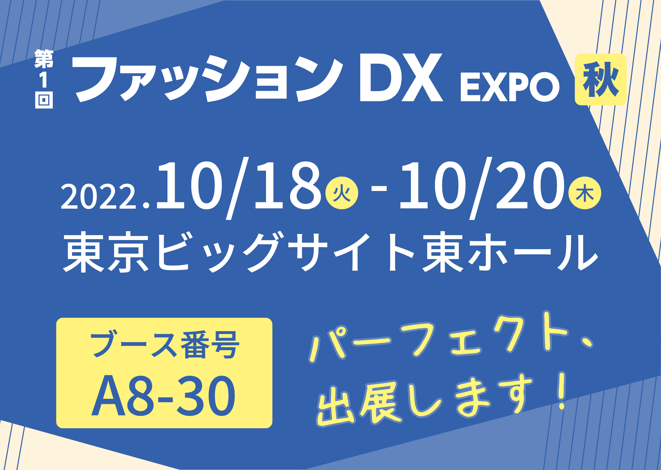 日本・東京(2022年10月3日)- ARおよびAI技術を活用したソリューションサービスを提供し、ファッション業界でデジタルトランスフォーメーション(DX)を奨励するパーフェクト株式会社は、2022年10日18(水)~20日(木)に東京ビックサイトで開催される「第1回 ファッション DX EXPO 秋」へ出展致します。