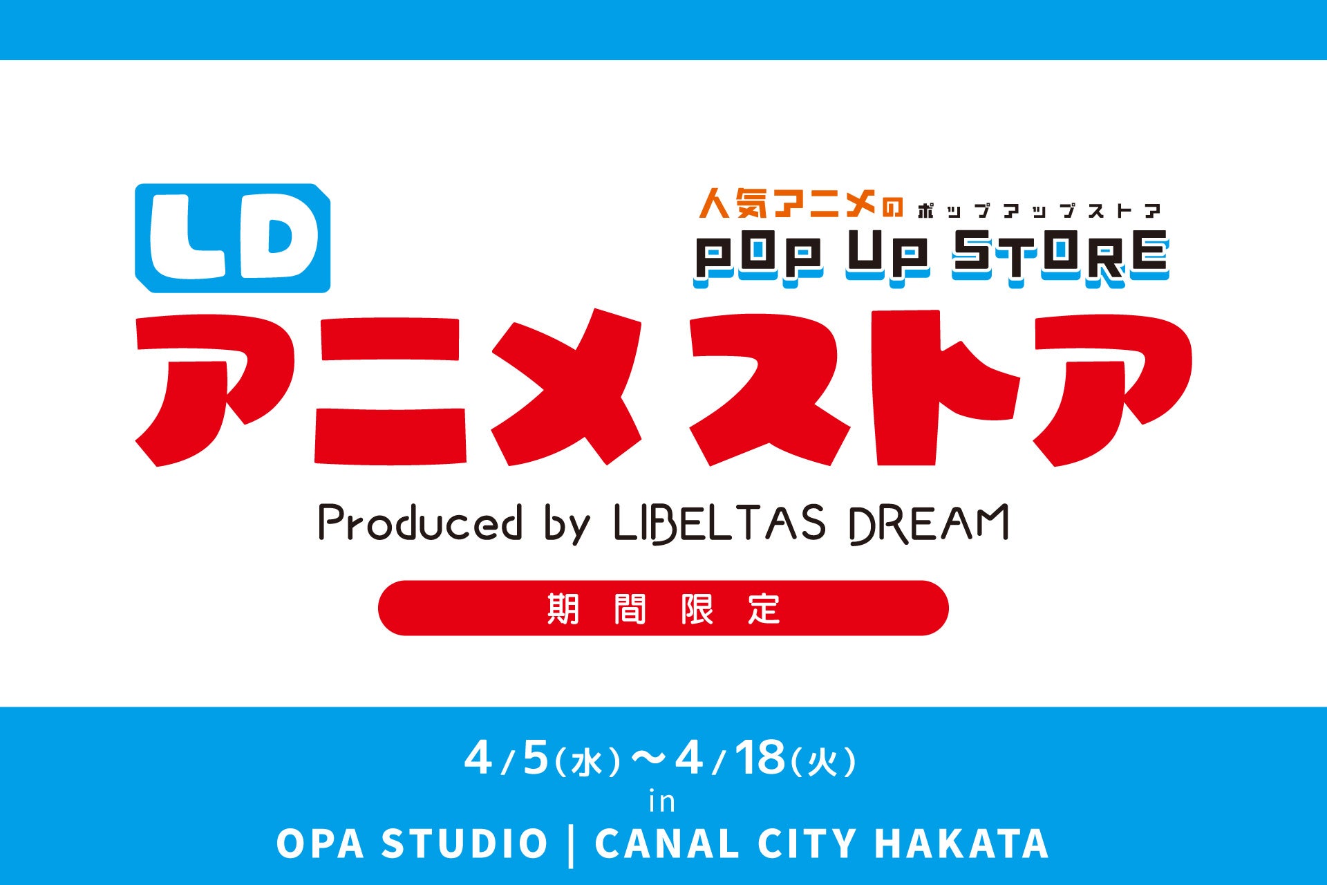 人気アニメのPOP UP STORE『LDアニメストア』をキャナルシティオーパ(福岡)にて、期間限定OPEN♪♪