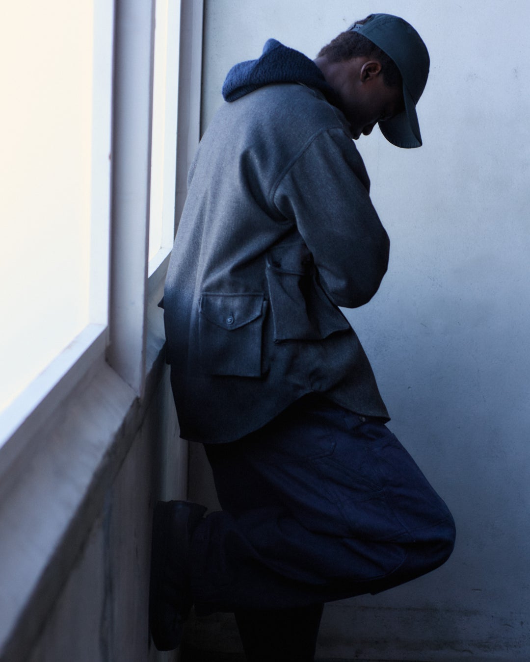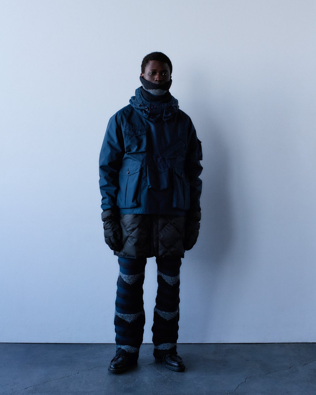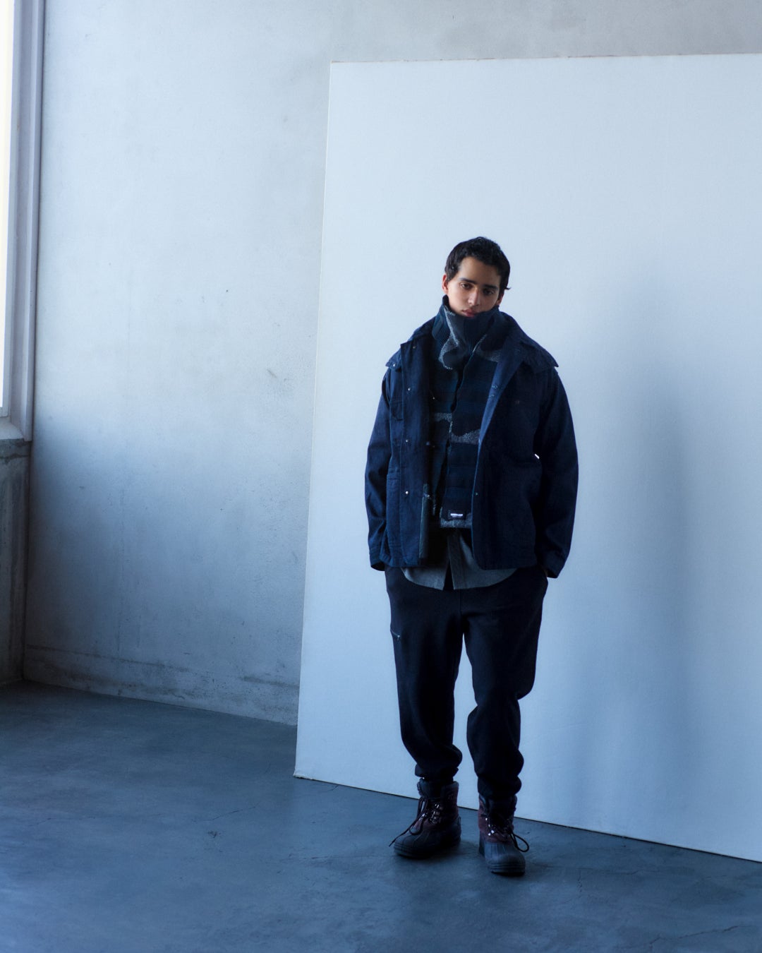 1stデリバリーでは、今回のコレクションのキーアイテムとなる「LINER DOWN JKT」をはじめとするダウンアイテムに、それらをドッキングすることで拡張できるデニムジャケットと、ロイヤルネイビーのスモックパーカーをショート丈にモディファイした「MIL SMOCK SHORT」などが登場。