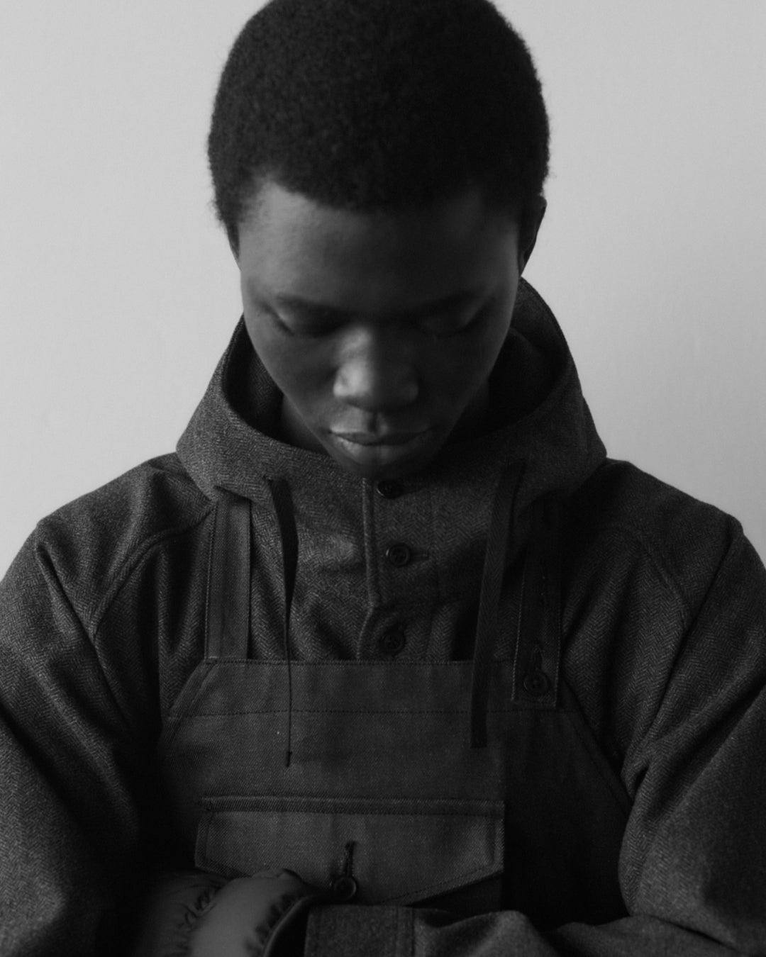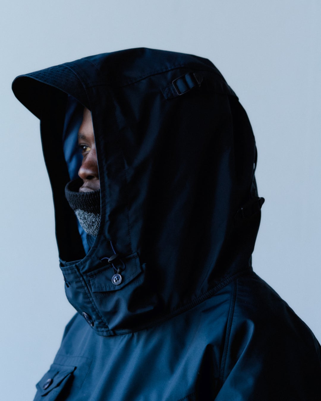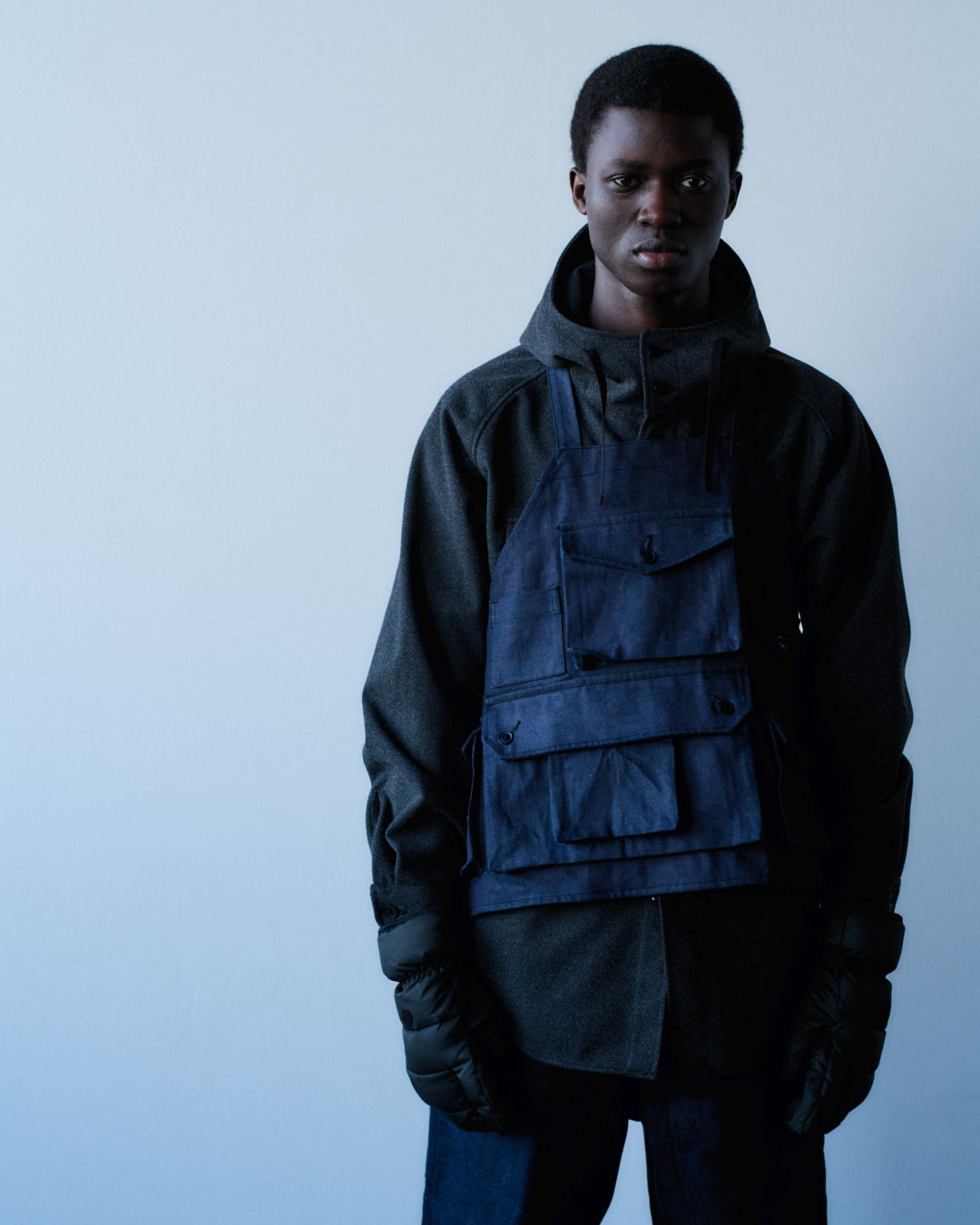 1stデリバリーでは、今回のコレクションのキーアイテムとなる「LINER DOWN JKT」をはじめとするダウンアイテムに、それらをドッキングすることで拡張できるデニムジャケットと、ロイヤルネイビーのスモックパーカーをショート丈にモディファイした「MIL SMOCK SHORT」などが登場。