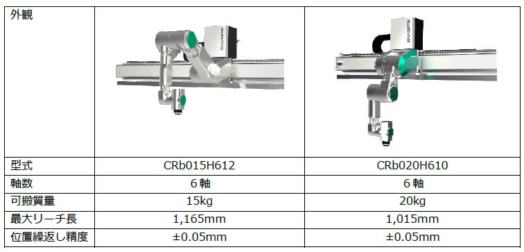 CRbシリーズは垂直または水平に直動軸を設け、そこにアームを取り付けた独自構造の多関節ロボットです。省スペースでコンパクト、高い剛性と直進性が特長で防水・防塵に対応しています。