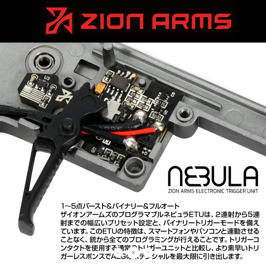 射撃モードを簡単に切り替えられる電子システム搭載(Zion Arms製MOSFET)。